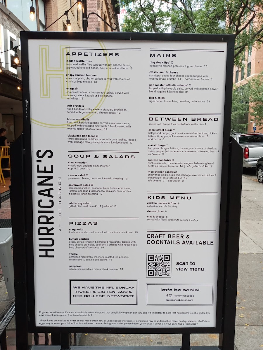 Welcome to Hurricane's at the Garden, an exciting dining destination nestled in the heart of Boston at 150 Canal St. This vibrant venue perfectly complements the energy of game days and special events. The menu features a delightful blend of classic American fare, crafted to satisfy diverse palates. Guests can expect an array of delectable dishes alongside refreshing beverages, making it the perfect spot for pre- or post-game celebrations.